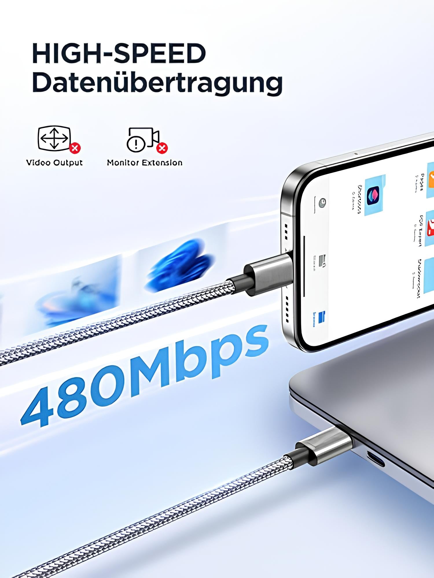 USB C auf USB C 1m Ladekabel 60W Schnellladekabel Nylon